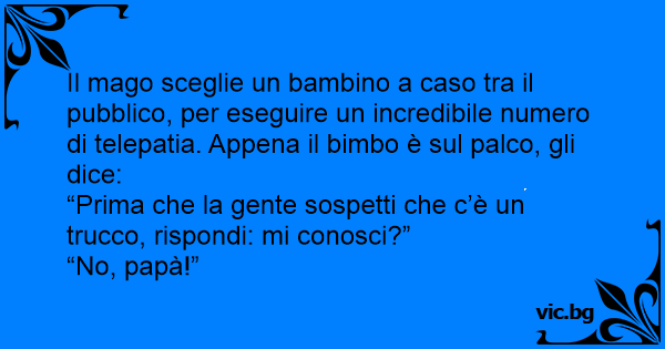 Il mago sceglie un bambino a caso tra il pubblico, per eseguire un incredibile numero di telepatia. Appena il вiмво è sul palco, gli dice: