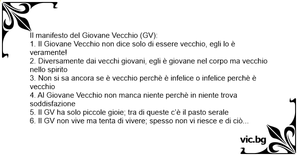 1. Il Giovane Vecchio non dice solo di essere vecchio, egli lo è veramente!