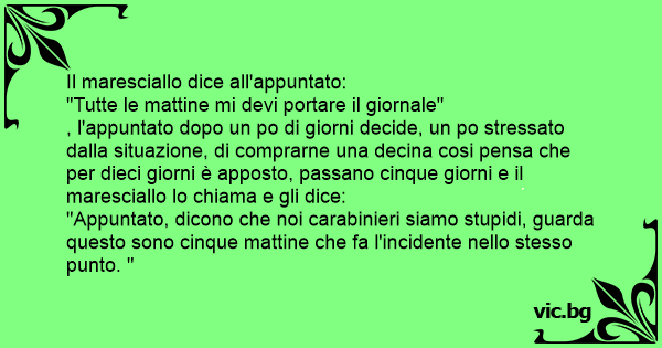 , l'appuntato dopo un po di giorni decide, un po stressato dalla situazione, di comprarne una decina cosi pensa che per dieci giorni è apposto, passano cinque giorni e il maresciallo lo chiama e gli dice: