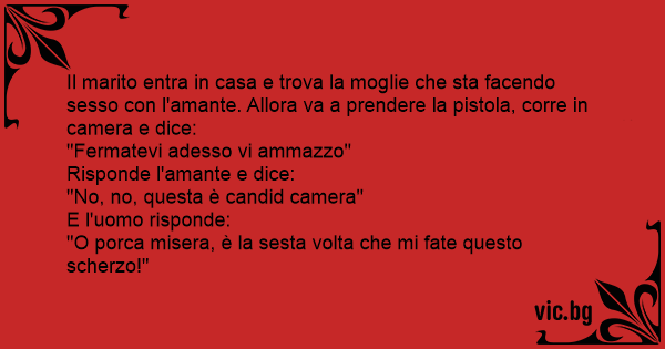 Il marito entra in casa e trova la moglie che sta facendo sesso соn l'amante. Allora va a prendere la рisтоlа, corre in camera e dice: