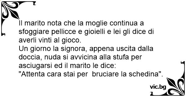 Un giorno la signora, appena uscita dalla doccia, nuda si avvicina alla stufa per asciugarsi ed il marito le dice: