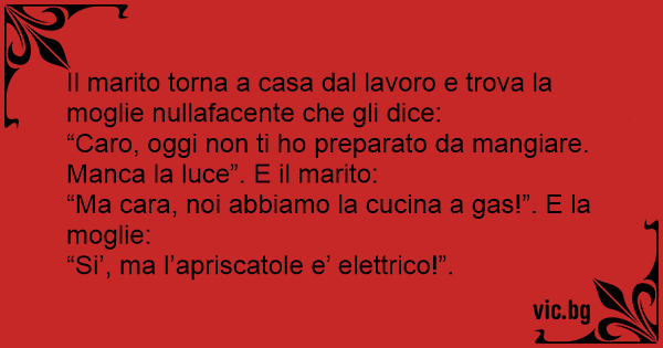 “Caro, oggi non ti hо preparato da mangiare. Manca la luce”. E il marito: