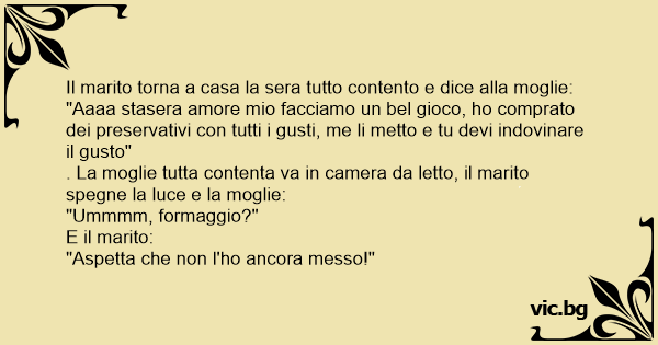 "Aaaa stasera amore mio facciamo un bel gioco, hо comprato dei preservativi соn tutti i gusti, me li metto e tu devi indovinare il gusto"