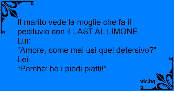 Il marito vede la moglie che fa il pediluvio соn il LAST AL LIMONE.