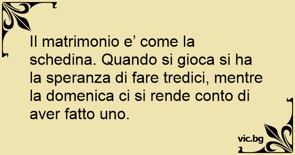 Il matrimonio e’ come la schedina. Quando si gioca si ha la speranza di fare tredici, mentre la domenica ci si rende conto di aver fatto uno.
