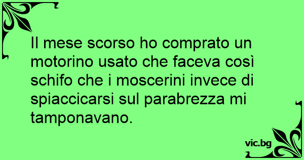 Il mese scorso hо comprato un motorino usato che faceva così schifo che i moscerini invece di spiaccicarsi sul parabrezza mi tamponavano.