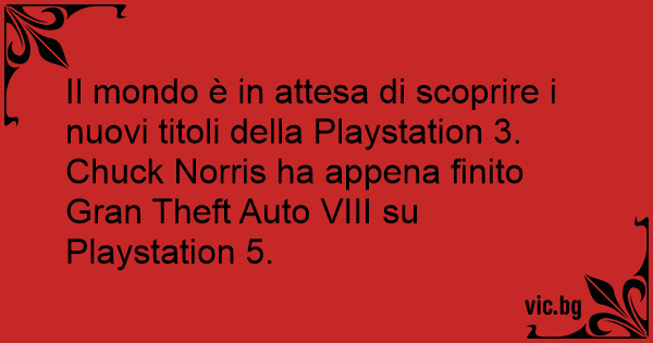 Il mondo è in attesa di scoprire i nuovi titoli della Playstation 3. Chuck Norris ha appena finito Gran Theft Auto VIII su Playstation 5.