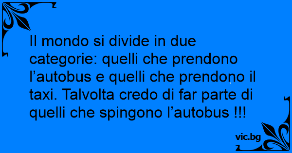 Il mondo si divide in due categorie: quelli che prendono l’autobus e quelli che prendono il taxi. Talvolta credo di far parte di quelli che spingono l’autobus !!!