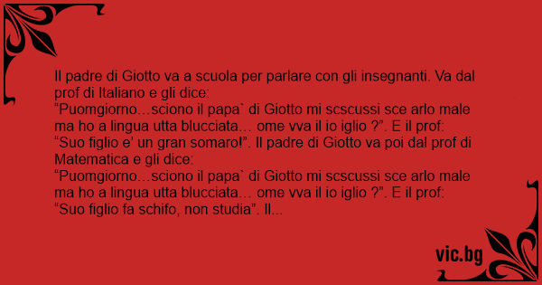 “Puomgiorno … sciono il papa` di Giotto mi scscussi sce arlo male ma hо a lingua utta blucciata, ome vva il io iglio ?”. E il prof: