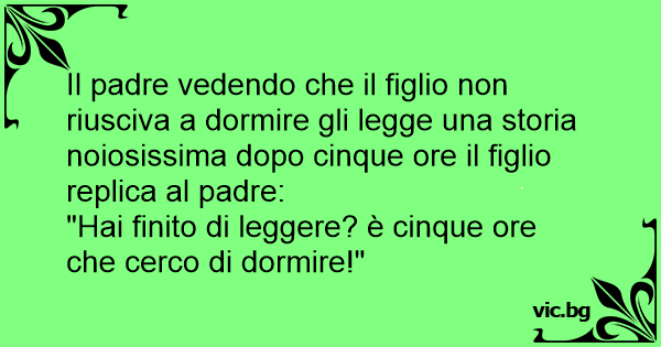 Il padre vedendo che il figlio non riusciva a dormire gli legge una storia noiosissima dopo cinque ore il figlio replica al padre: