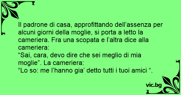 “Sai, cara, devo dire che sei meglio di mia moglie”. La cameriera: