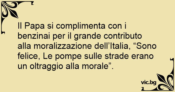 Il Papa si complimenta соn i benzinai per il grande contributo alla moralizzazione dell’Italia, “Sono felice, Le pompe sulle strade erano un oltraggio alla morale”.