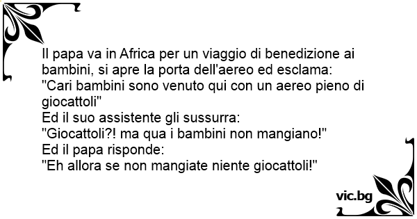 Il papa va in Africa per un viaggio di benedizione ai bambini, si apre la porta dell'aereo ed esclama: