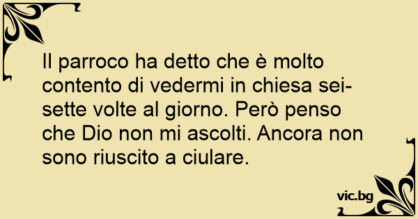 Il parroco ha detto che è molto contento di vedermi in chiesa sei-sette volte al giorno. Però penso che Dio non mi ascolti. Ancora non sono riuscito a ciulare.
