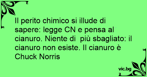 Il perito chimico si illude di sapere: legge CN e pensa al cianuro. Niente di più sbagliato: il cianuro non esiste. Il cianuro è Chuck Norris