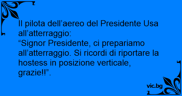 “Signor Presidente, ci prepariamo all’atterraggio. Si ricordi di riportare la hostess in posizione verticale, grazie!!”.