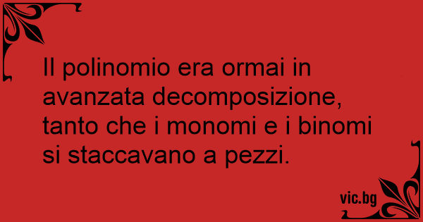 Il polinomio era ormai in avanzata decomposizione, tanto che i monomi e i binomi si staccavano a pezzi.