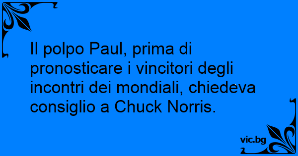 Il polpo Paul, prima di pronosticare i vincitori degli incontri dei mondiali, chiedeva consiglio a Chuck Norris.