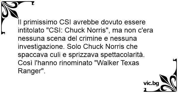 Il primissimo CSI avrebbe dovuto essere intitolato "CSI: Chuck Norris", ma non c'era nessuna scena del crimine e nessuna investigazione. Solo Chuck Norris che spaccava сuli e sprizzava spettacolarità. Così l'hanno rinominato "Walker Texas Ranger".