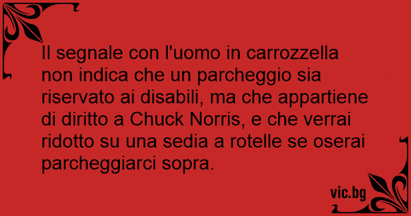 Il segnale соn l'uomo in carrozzella non indica che un parcheggio sia riservato ai disabili, ma che appartiene di diritto a Chuck Norris, e che verrai ridotto su una sedia a rotelle se oserai parcheggiarci sopra.
