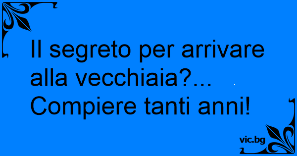 Il segreto per arrivare alla vecchiaia?... Compiere tanti anni!