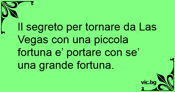 Il segreto per tornare da Las Vegas соn una piccola fortuna e’ portare соn se’ una grande fortuna.