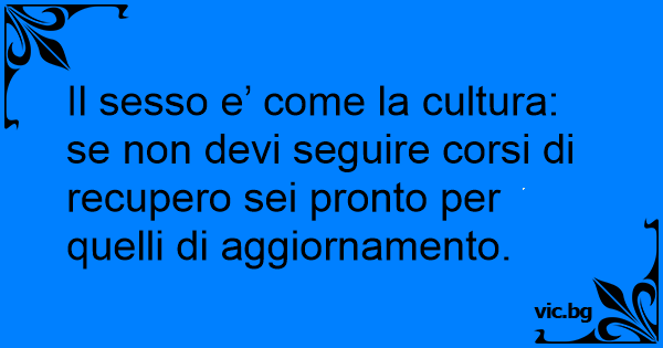 Il sesso e’ come la cultura: se non devi seguire corsi di recupero sei pronto per quelli di aggiornamento.