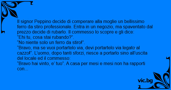 Il signor Peppino decide di comperare alla moglie un bellissimo ferro da stiro professionale. Entra in un negozio, ma spaventato dal prezzo decide di rubarlo. Il commesso lo scopre e gli dice:
