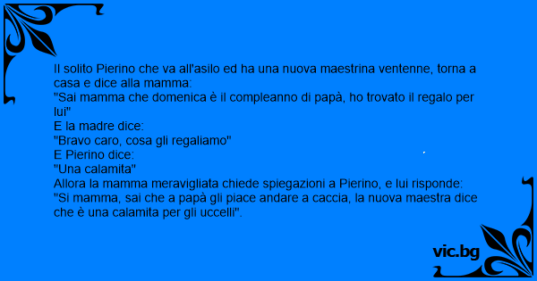 Il solito Pierino che va all'asilo ed ha una nuova maestrina ventenne, torna a casa e dice alla mamma: