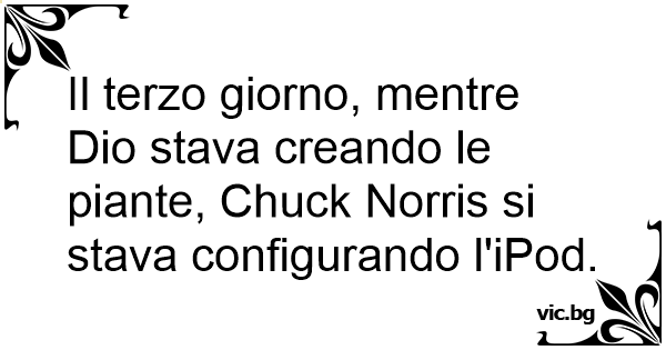 Il terzo giorno, mentre Dio stava creando le piante, Chuck Norris si stava configurando l'iPod.
