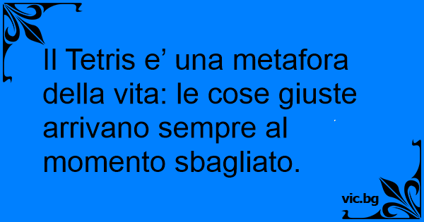 Il Tetris e’ una metafora della vita: le cose giuste arrivano sempre al momento sbagliato.