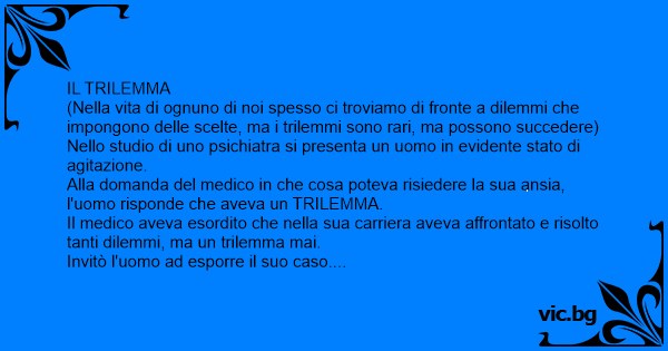 Alla domanda del medico in che cosa poteva risiedere la sua ansia, l'uomo risponde che aveva un TRILEMMA.