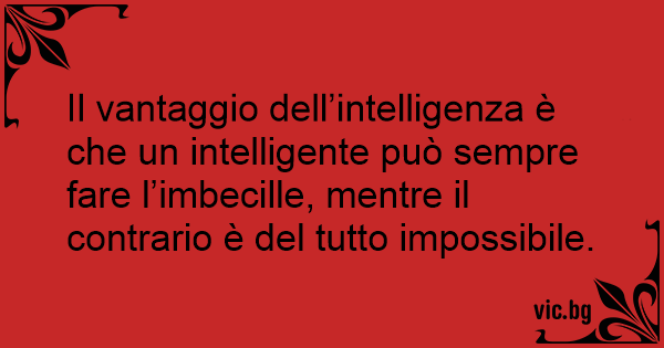 Il vantaggio dell’intelligenza è che un intelligente può sempre fare l’imbecille, mentre il contrario è del tutto impossibile.