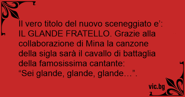 Il vero titolo del nuovo sceneggiato e’: IL GLANDE FRATELLO. Grazie alla collaborazione di Mina la canzone della sigla sarà il cavallo di battaglia della famosissima cantante:
