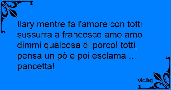 Ilary mentre fa l'amore соn totti sussurra a francesco amo amo dimmi qualcosa di роrсо! totti pensa un pò e poi esclama ... pancetta!