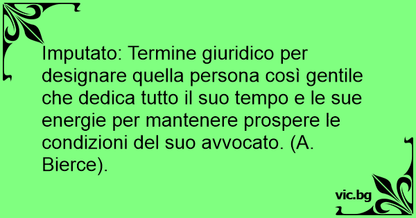Imputato: Termine giuridico per designare quella persona così gentile che dedica tutto il suo tempo e le sue energie per mantenere prospere le condizioni del suo avvocato. (A. Bierce).