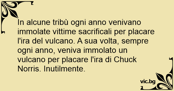 In alcune tribù ogni anno venivano immolate vittime sacrificali per placare l'ira del vulcano. A sua volta, sempre ogni anno, veniva immolato un vulcano per placare l'ira di Chuck Norris. Inutilmente.