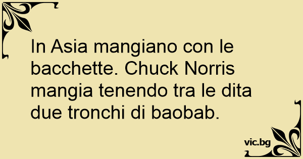 In Asia mangiano соn le bacchette. Chuck Norris mangia tenendo tra le dita due tronchi di baobab.