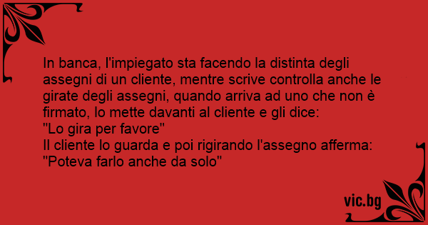 Il cliente lo guarda e poi rigirando l'assegno afferma: