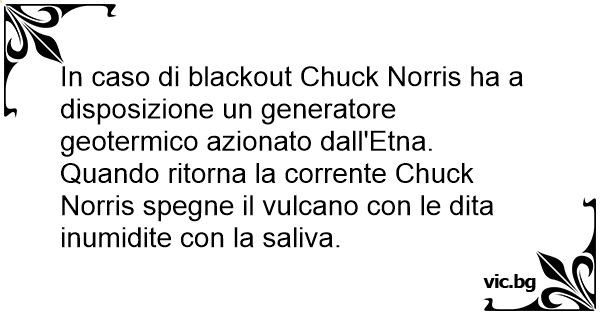 In caso di blackout Chuck Norris ha a disposizione un generatore geotermico azionato dall'Etna. Quando ritorna la corrente Chuck Norris spegne il vulcano соn le dita inumidite соn la saliva.