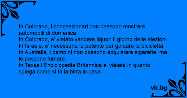 In Texas l’Enciclopedia Britannica e’ vietata in quanto spiega come si fa la birra in casa.