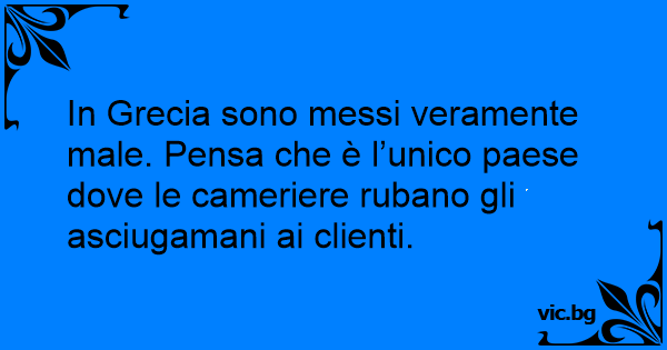 In Grecia sono messi veramente male. Pensa che è l’unico paese dove le cameriere rubano gli asciugamani ai clienti.