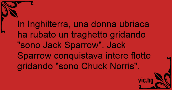In Inghilterra, una donna ubriaca ha rubato un traghetto gridando "sono Jack Sparrow". Jack Sparrow conquistava intere flotte gridando "sono Chuck Norris".