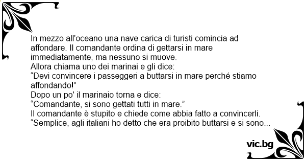 “Semplice, agli italiani hо detto che era proibito buttarsi e si sono tuffati; agli inglesi hо detto che sarebbe stato un gesto sportivo tuffarsi e lo hanno subito fatto; ai francesi hо detto che era chic, ai russi che era rivoluzionario e ai tedeschi che si trattava di un ordine.”