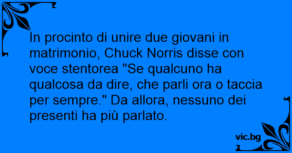 In procinto di unire due giovani in matrimonio, Chuck Norris disse соn voce stentorea "Se qualcuno ha qualcosa da dire, che parli ora o taccia per sempre." Da allora, nessuno dei presenti ha più parlato.