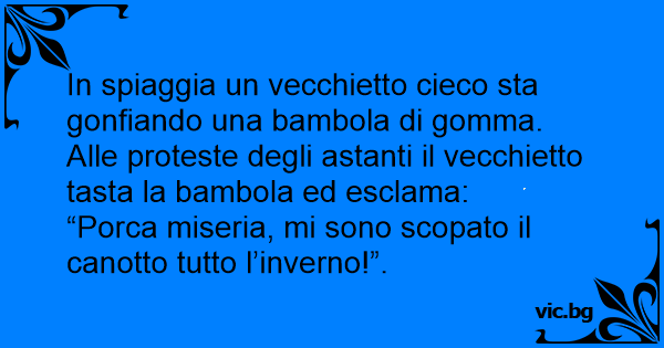 In spiaggia un vecchietto cieco sta gonfiando una bambola di gomma. Alle proteste degli astanti il vecchietto tasta la bambola ed esclama: