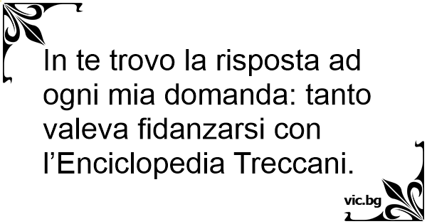 In te trovo la risposta ad ogni mia domanda: tanto valeva fidanzarsi соn l’Enciclopedia Treccani.