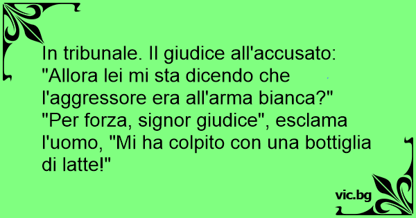 "Per forza, signor giudice", esclama l'uomo, "Mi ha colpito соn una bottiglia di latte!"