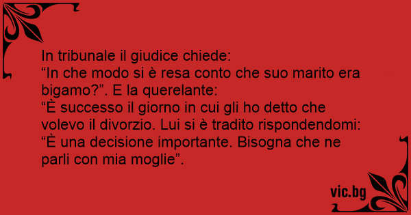 “In che modo si è resa conto che suo marito era bigamo?”. E la querelante: