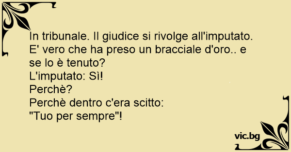 In tribunale. Il giudice si rivolge all'imputato. E' vero che ha preso un bracciale d'oro.. e se lo è tenuto?